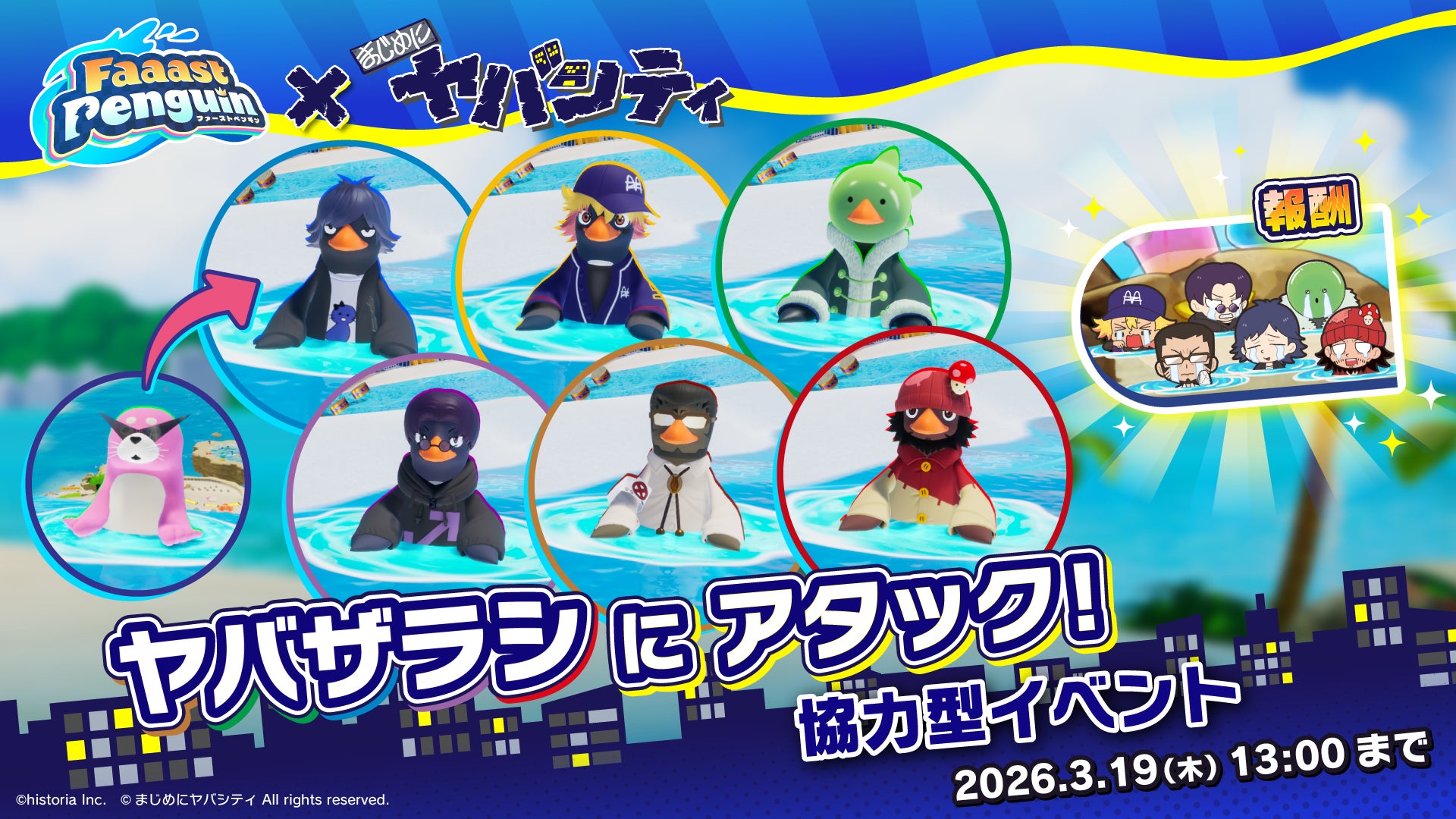 株式会社ヒストリアは、サバイバルアクションレース『Faaast Penguin』(ファーストペンギン)にて開催するゲーム実況グループ『まじめにヤバシティ』とのコラボイベントの詳細を公開しました。