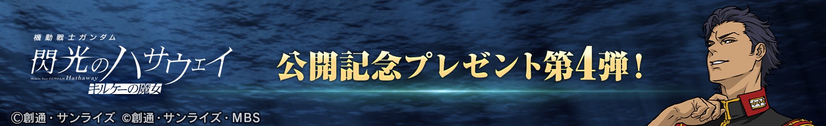 『機動戦士ガンダム 閃光のハサウェイ キルケーの魔女』の公開記念プレゼント第4弾として、SSRキャラクター「ケネス・スレッグ」とダイヤ300個がもらえるプレゼントキャンペーンを開催中!