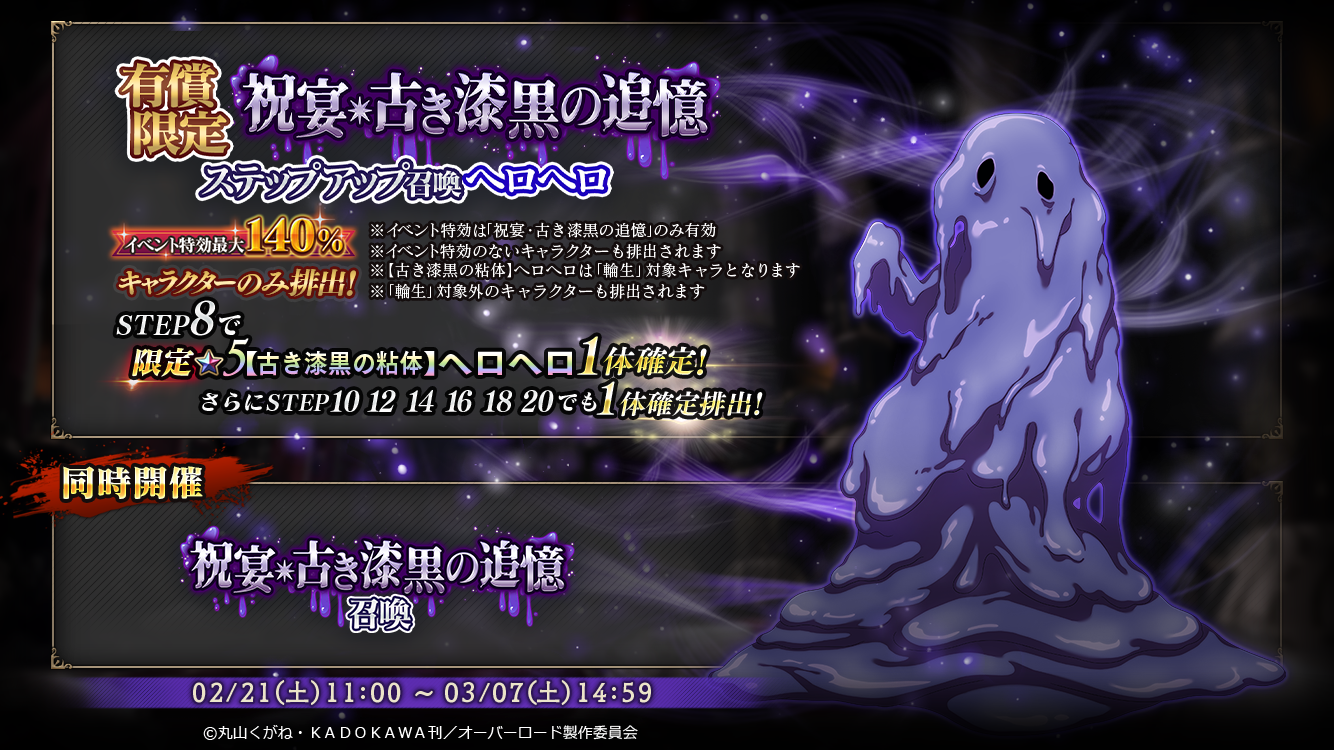 2/21よりイベント『祝宴・古き漆黒の追憶』を実施!召喚では『★5【古き漆黒の粘体】ヘロヘロ』が登場します!