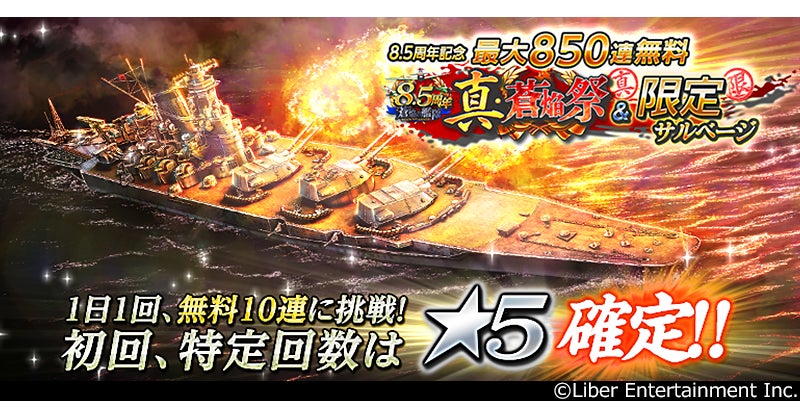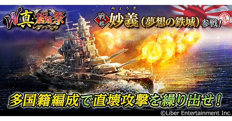 株式会社リベル・エンタテインメントが運営する本格海戦ゲーム『蒼焔の艦隊』(そうえんのかんたい、iOS/Android/DMM Games)は、2026年2月25日(水)より、8.5周年を記念した無料サルベージや「W真・蒼焔祭」が開催され、新たに空母「大鳳(残照たる荒鷲)」と、戦艦「妙義(夢想の鉄城)」が参戦することをお知らせいたします。