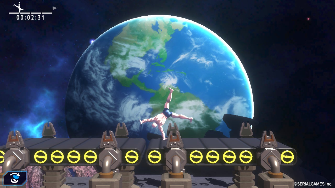 本作は、マッチョを主人公にしたユニークな世界観と、側転・スクワットといったクセのあるアクションが特徴のローリングアクションゲームです。高難易度ながら、挑戦を重ねることで確かな上達を実感できるゲーム性となっており、プレイヤーは宇宙を旅しながら地球への帰還を目指します。