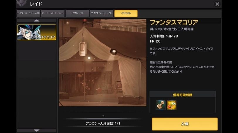 ●レベル85以上、FP/疲労度10以上、ソウルリテンション700以上で参加可能