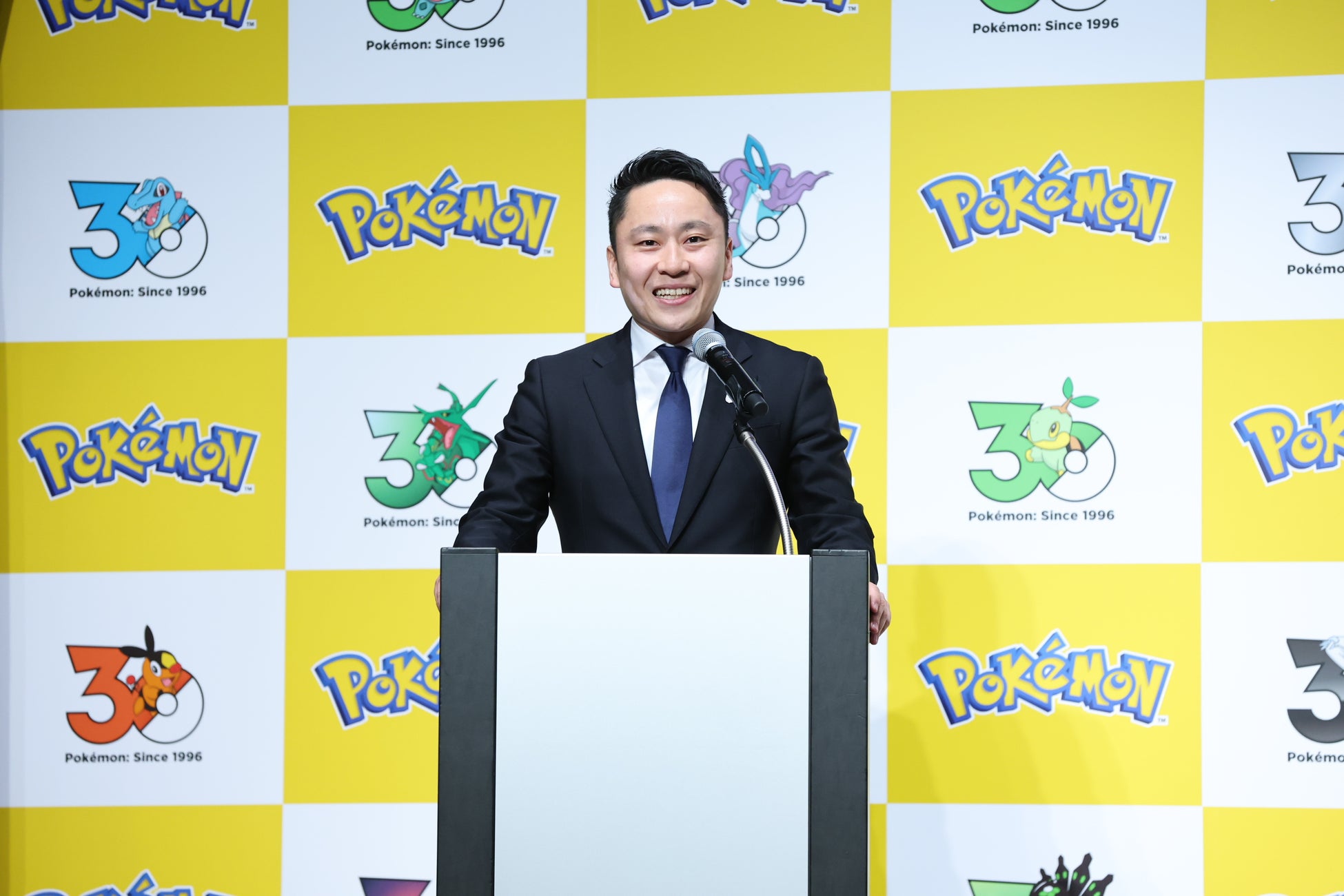 発表会冒頭、代表取締役COO宇都宮が登壇し、30周年を迎えることに感謝の言葉を述べるとともに、これまでの歩みについて「この長い歳月、ポケモンが色褪せることなく愛され続けてきたことは、世界中のファンの皆様、そして本日お集まりのメディアやパートナーの皆様のご支援あってのことです」とコメントしました。