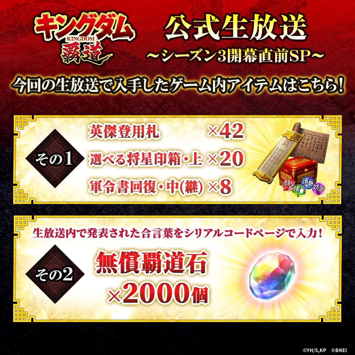 「キングダム 覇道」公式生放送~シーズン3開幕直前SP~ 報酬