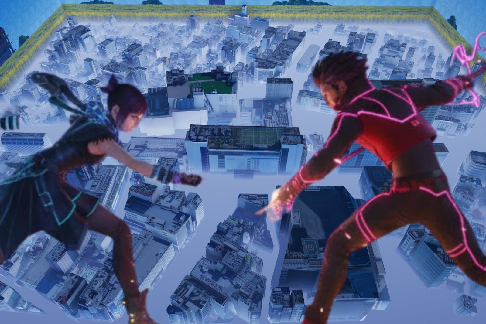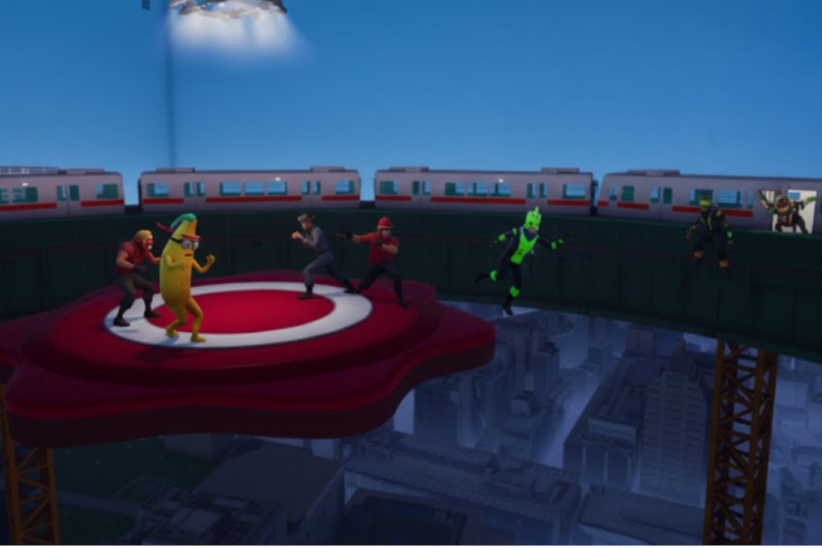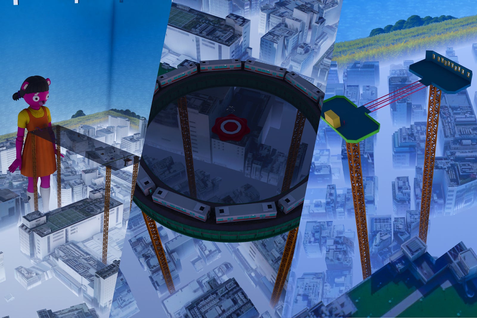 国交省の3D都市データを活用し、立川駅周辺のリアルな街並みをFortnite内に構築。
