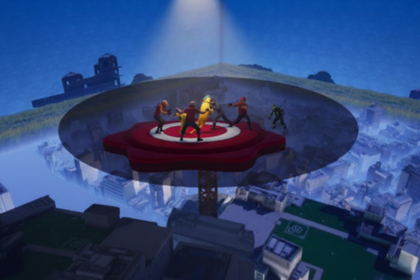 国交省の3D都市データを活用し、立川駅周辺のリアルな街並みをFortnite内に構築。