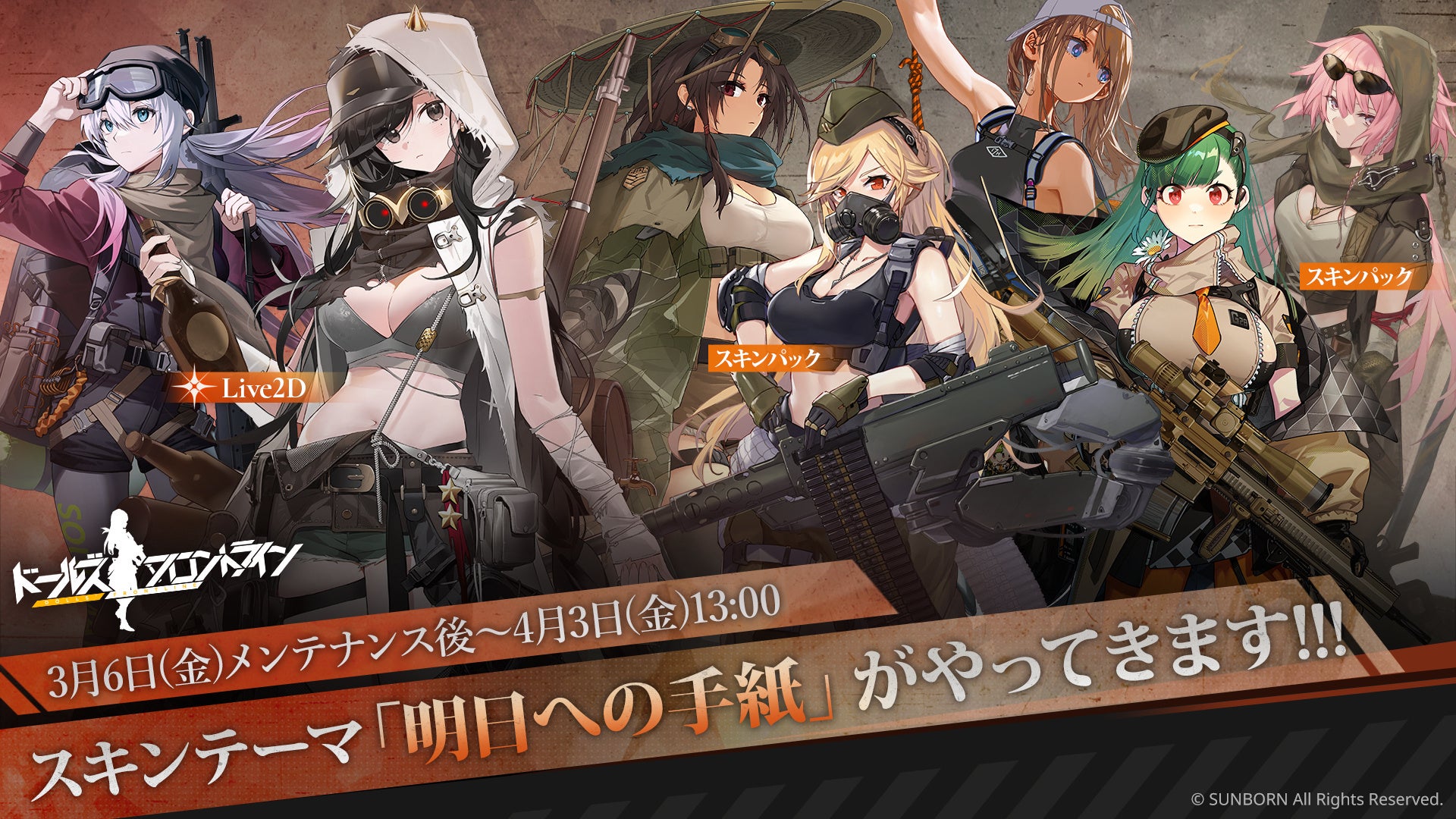 荒廃した過酷な世界を生き抜く人形達をイメージした新スキンテーマ『明日への手紙』が「3月6日(金)、メンテナンス後」よりゲーム内に追加されます。