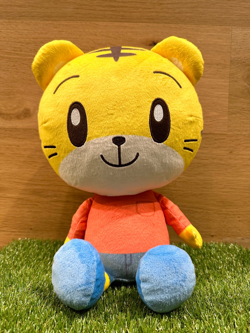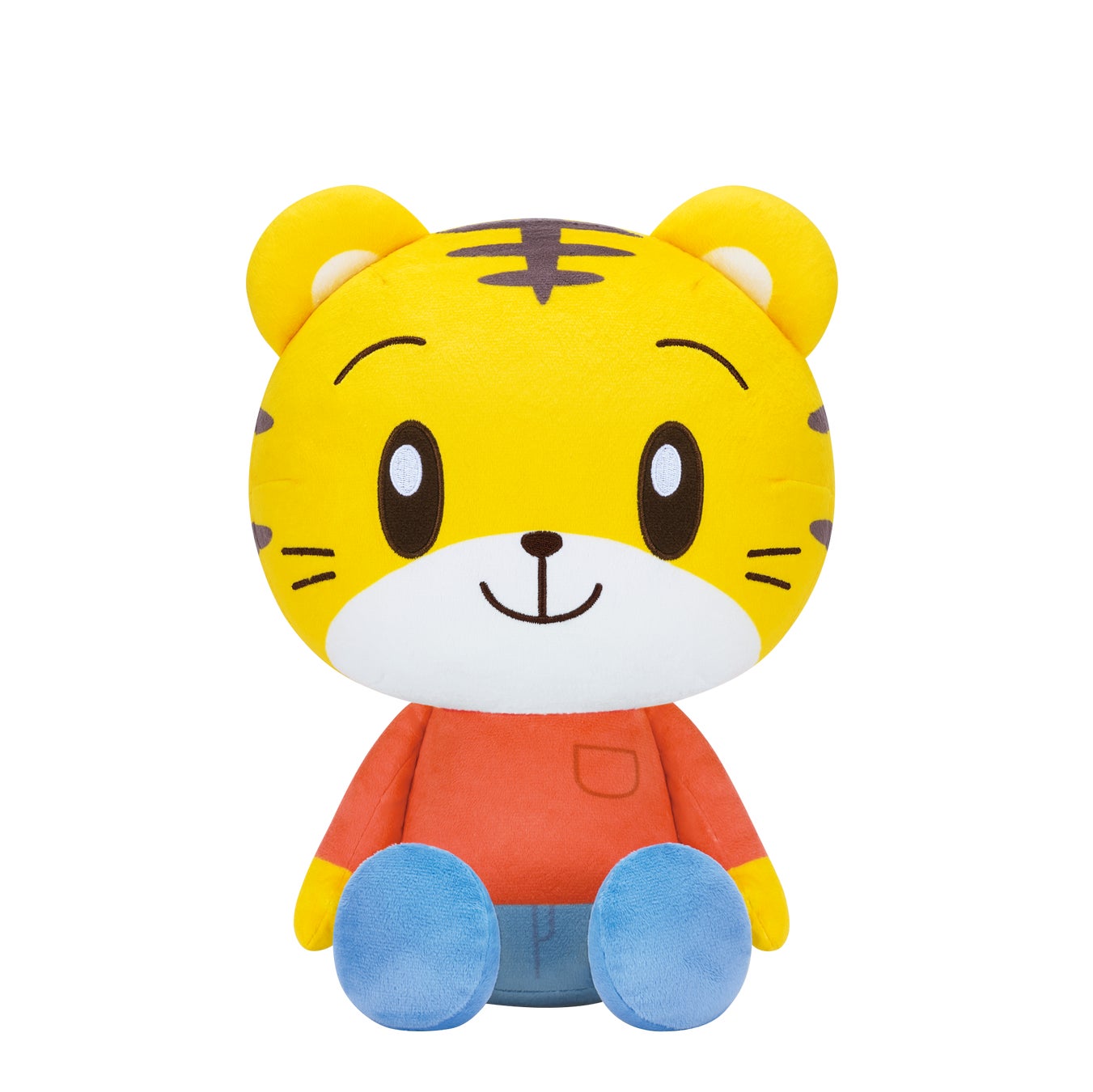 お子さまがギュッと抱っこしやすいサイズ感で、ぺたんとお座りもできるしまじろうのぬいぐるみ。