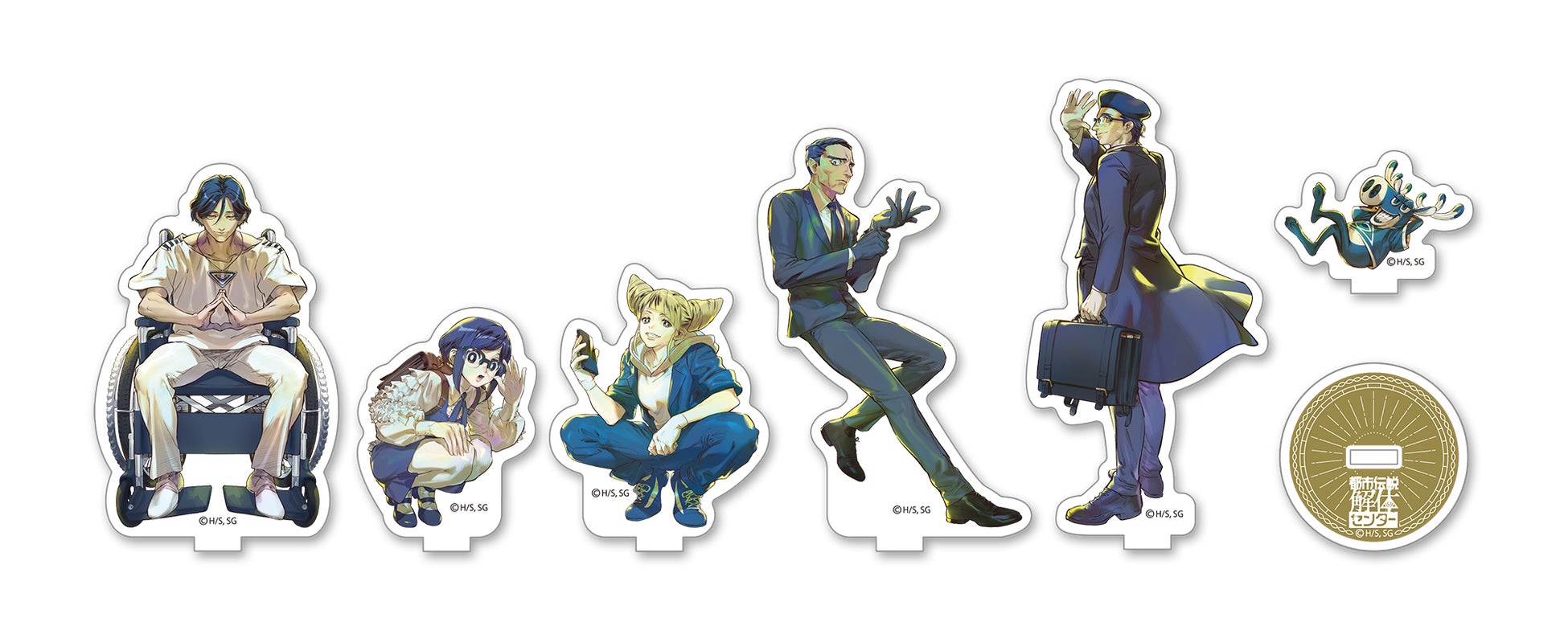 描き下ろしイラストの魅力を、鏡面が生み出す奥行きと輝きによって最大限に引き立てたS賞の「パブミラー」はファン必見のアイテムです。A賞の「Tシャツ」は描き下ろしイラストを大胆に使用した3種でご用意。胸元のワンポイントもお洒落で、これを着ればあなたもセンターの一員になれちゃうかも…? 他にも個性豊かなキャラクターたちの「アクリルスタンド」や輝く黄金が目を惹く「箔押しコースター」など、ファン必見のラインナップとなっております。ミステリアスで洗練されたアイテムの数々を、どうぞその手で『解体』してください!