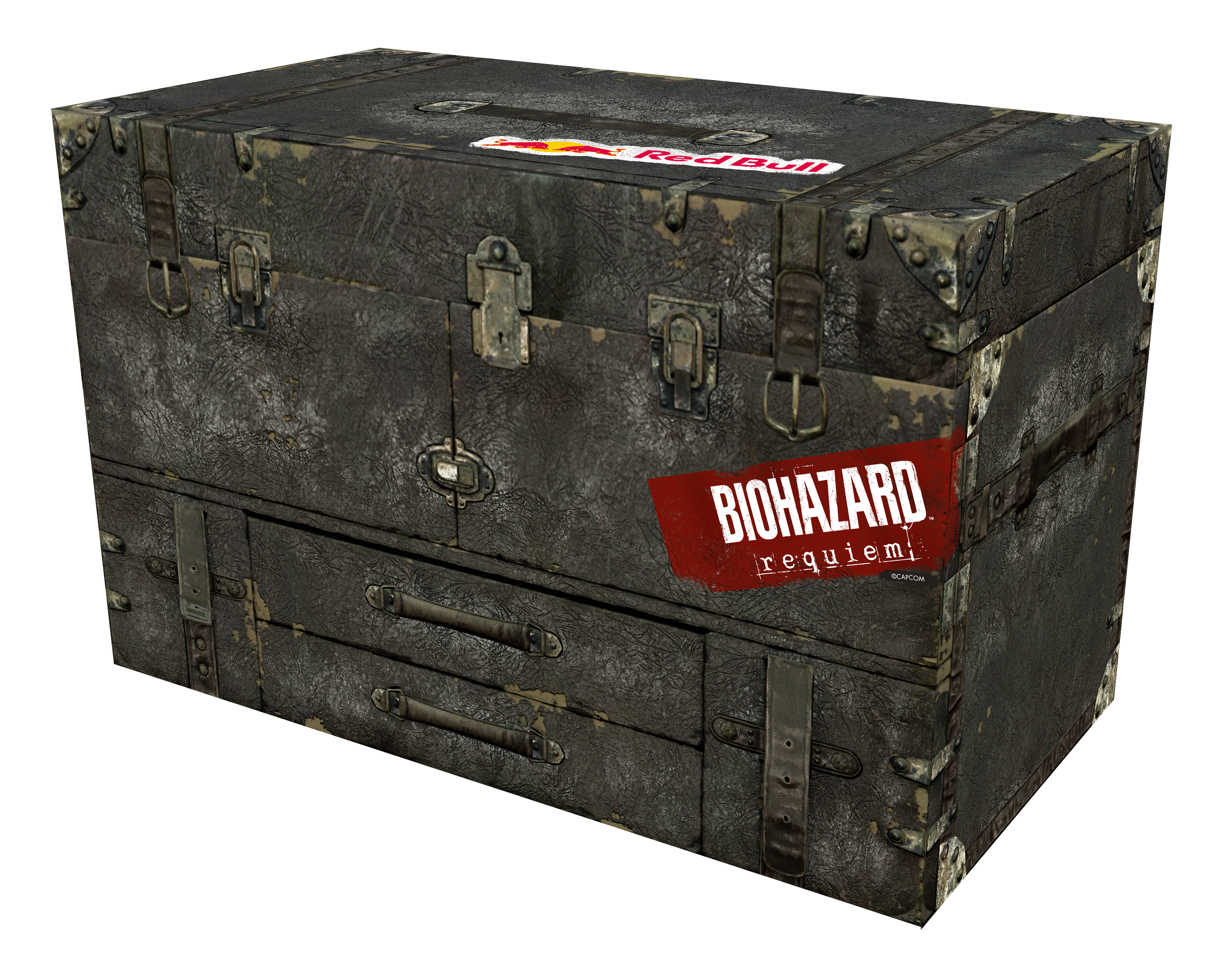 まず3月には、 “バイオハザードプレイ時の没入儀式あるある”を選んで投稿すると、ゲーム内のアイテムBOXを再現した限定グッズを含む「恐怖にやみつき 没入キーアイテム セット」などが当たるSNSキャンペーンを開催します。また、期間中の3月5日〜3月22日にはCAPCOM STOREで対象商品を購入した方々にレッドブルを配布いたします。