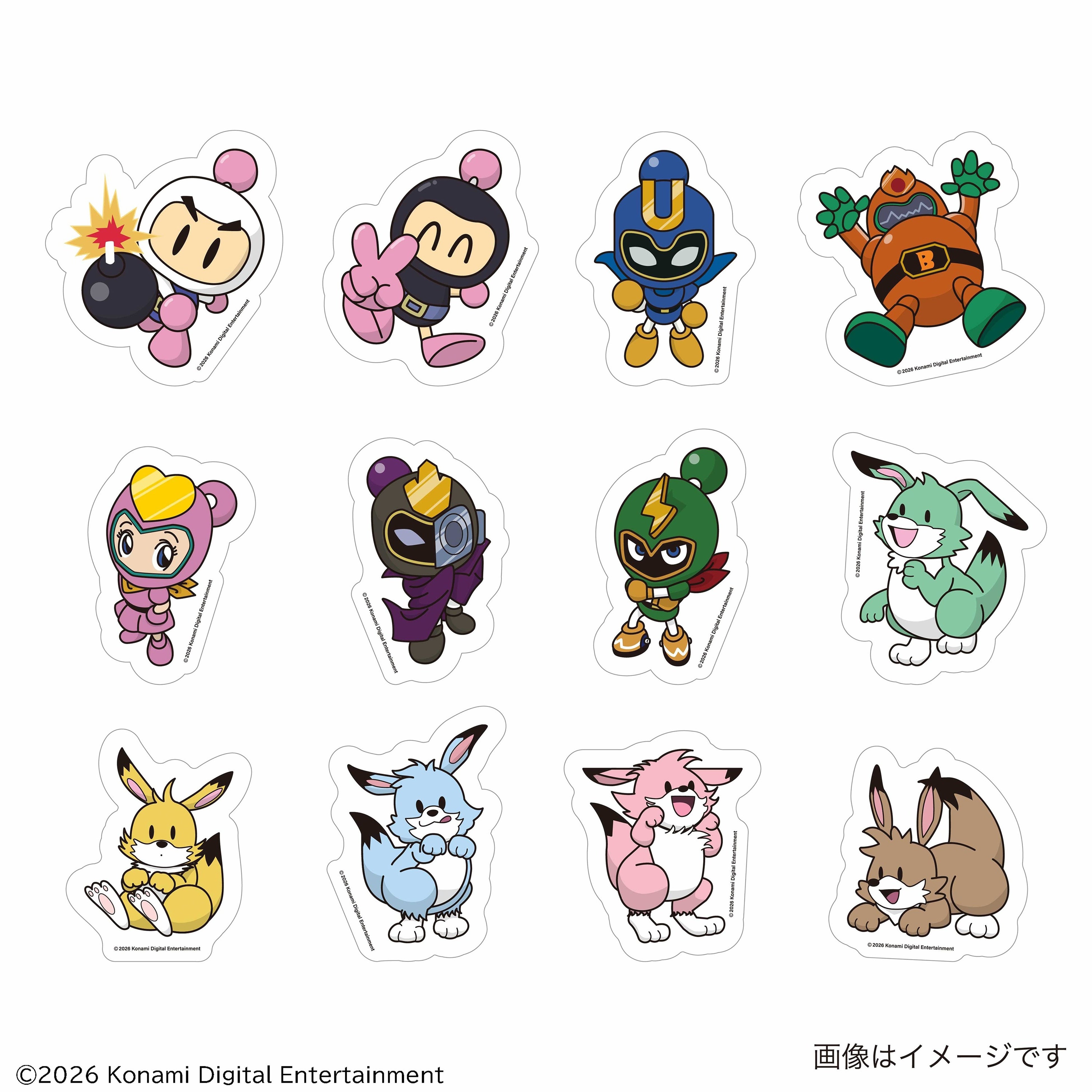 今回の限定グッズでは、KONAMIの人気ゲーム「ボンバーマン」シリーズおなじみの白ボン、黒ボン、ルーイと、