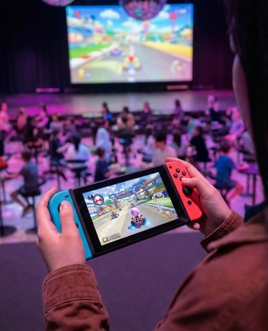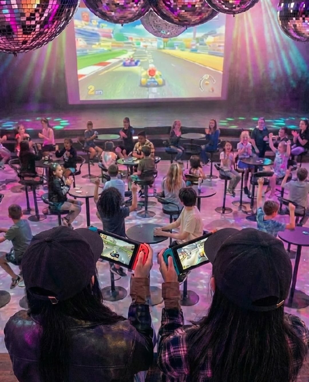 会場はWHATAWON内「Floor Disco Ball」。大迫力のスクリーンに映し出されるコースで、白熱のレースがスタートします。