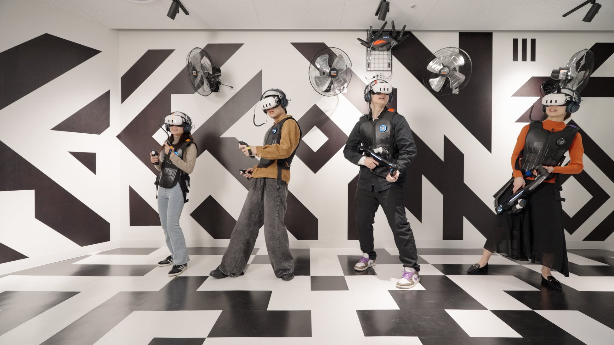 VRヘッドセットをつけた瞬間、目の前に廃墟が広がります。突然現れるゾンビを、仲間と叫びながら撃ち抜く15分間。「後ろ!」「リロード!」「助けて!」仲間と叫び合いながら生き残りを目指す、チーム型シューティング体験です。有吉さん自身も体験し、番組内で話題となりました。