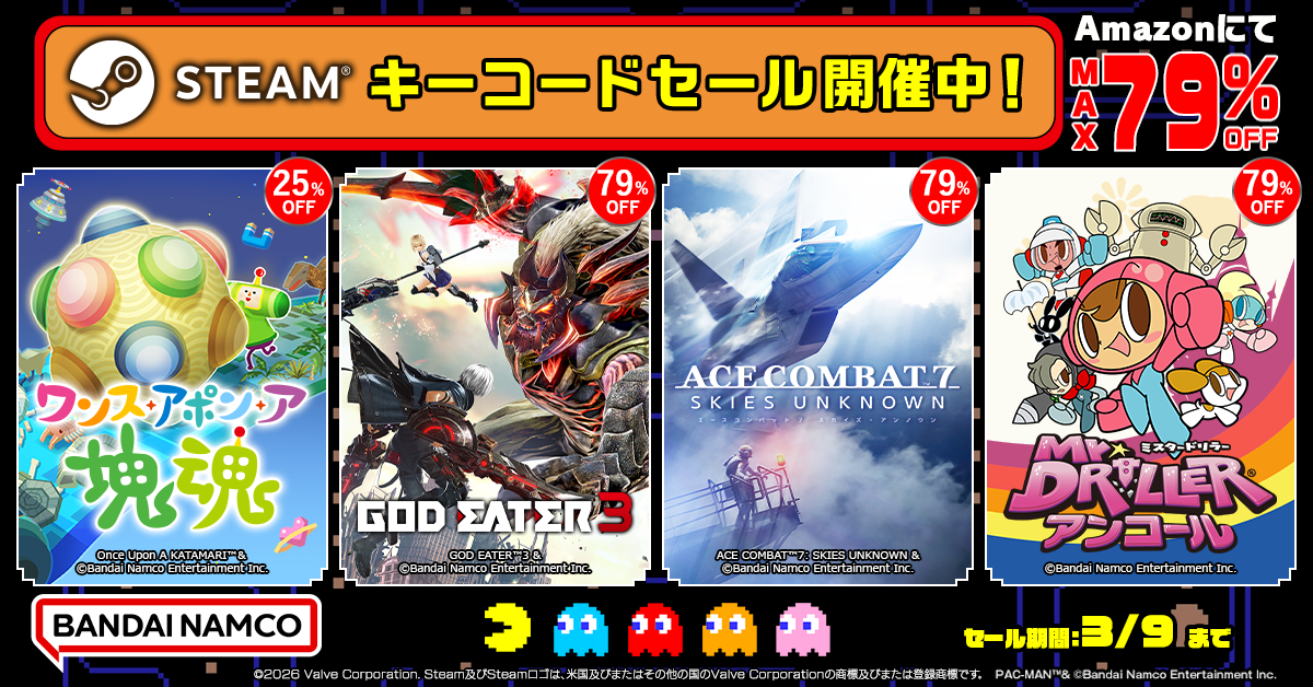 株式会社バンダイナムコエンターテインメントがAmazonにてSTEAMキーコードセールを開催したことをお知らせいたします。