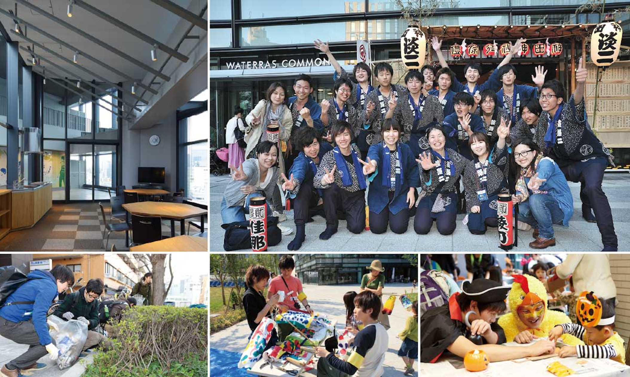 ワテラススチューデントハウスは、地域活動への参加を入居条件とする学生マンションです。入居する学生は、まちづくり組織「一般社団法人淡路エリアマネジメント」の学生会員となり、まちの一員として、さまざまな活動に取り組んでいます。