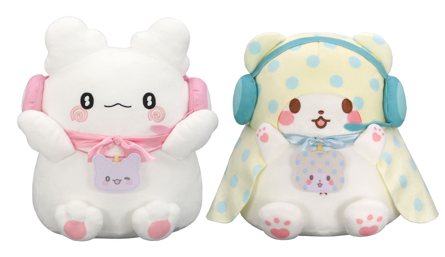 管制官姿の「はなまるおばけ」、「まるもふびより」のBIGぬいぐるみ。