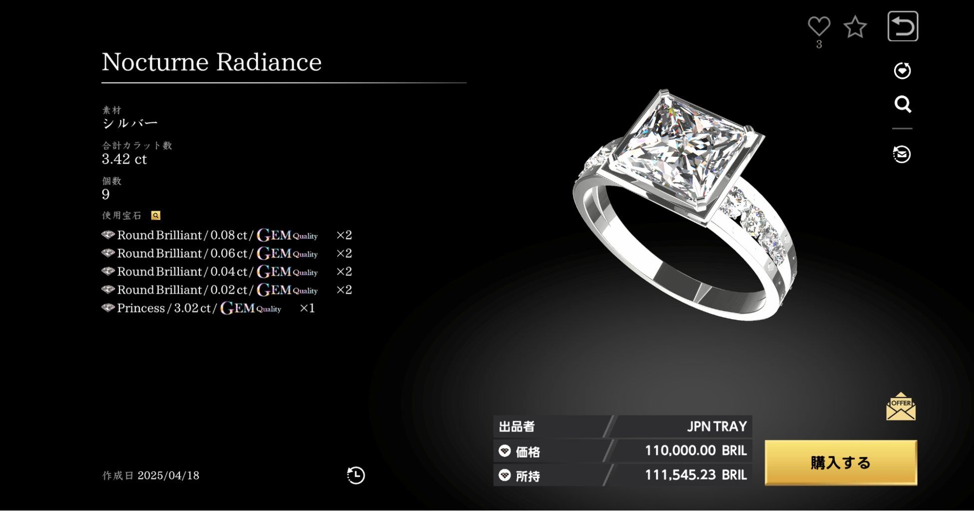 宝石は、ゲーム内で他プレイヤーとBRILトークンで取引をしたり、ジュエリーに加工して販売していくことが可能。