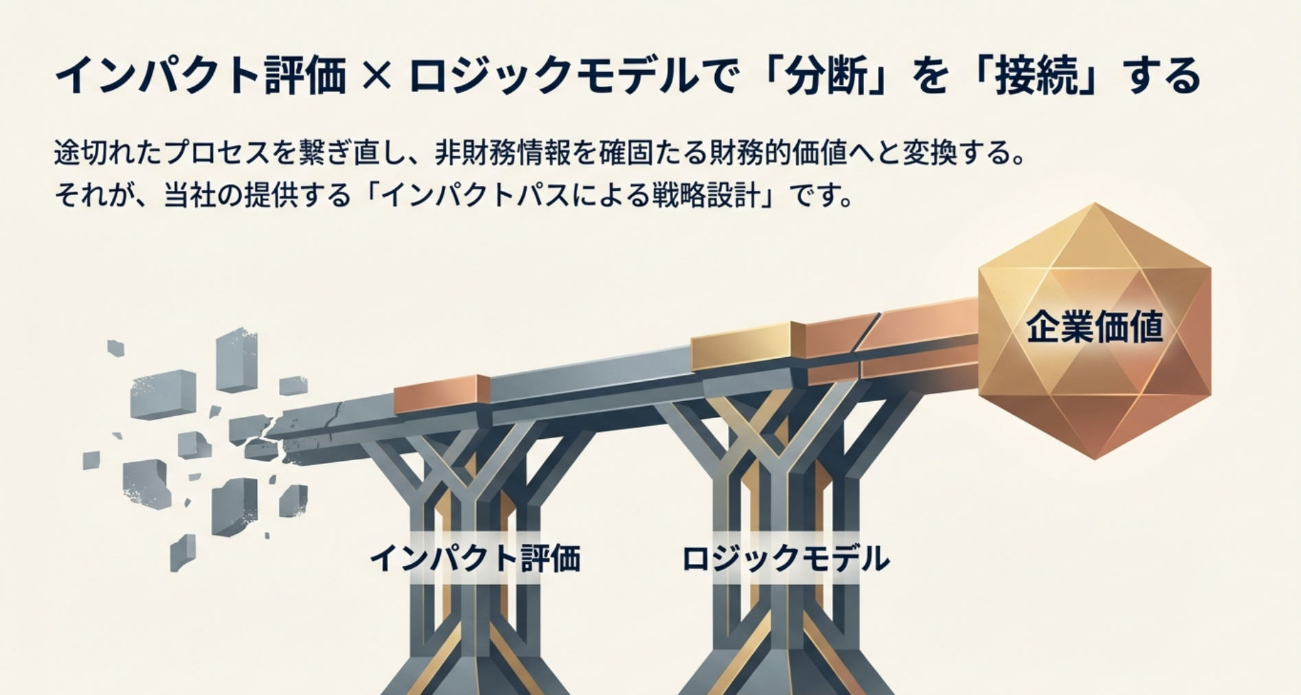 近年、ESG開示の高度化により、企業にはマテリアリティと企業価値の関係を説明することが求められています。ソーシャルインパクト・リサーチ(代表:熊沢拓)は、インパクト評価とロジックモデルを活用し、マテリアリティを企業価値へ接続する戦略設計支援を30社以上のご支援を提供しています。