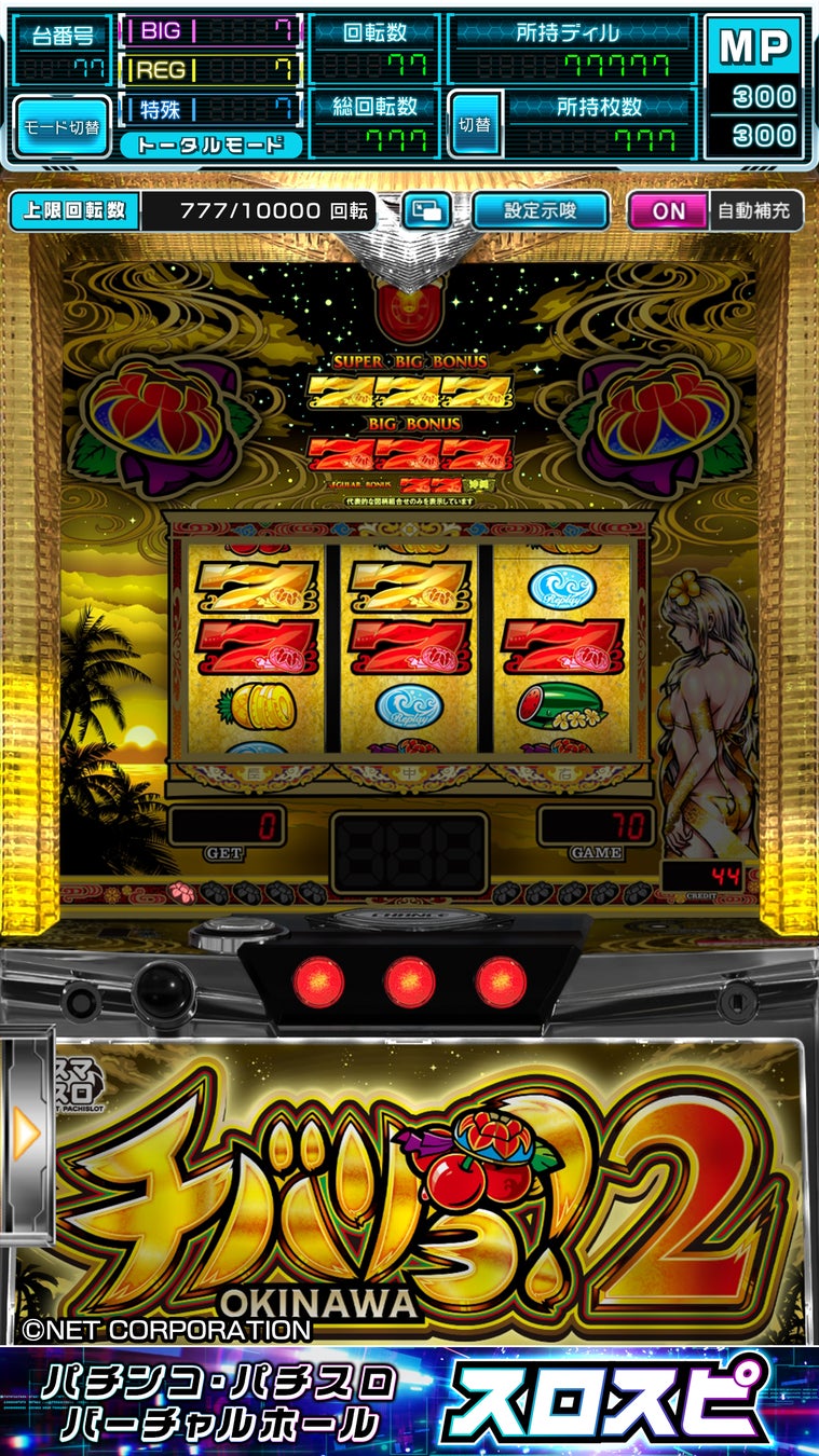 本作は、遊技機メーカー ネット株式会社の協力による「チバリヨ」シリーズの最新作です。お馴染みの花笠が点灯すればボーナス確定というシンプルなゲーム性ながら、など、予測不能な出玉性能を誇る人気機種を、スロスピでお楽しみいただけます。