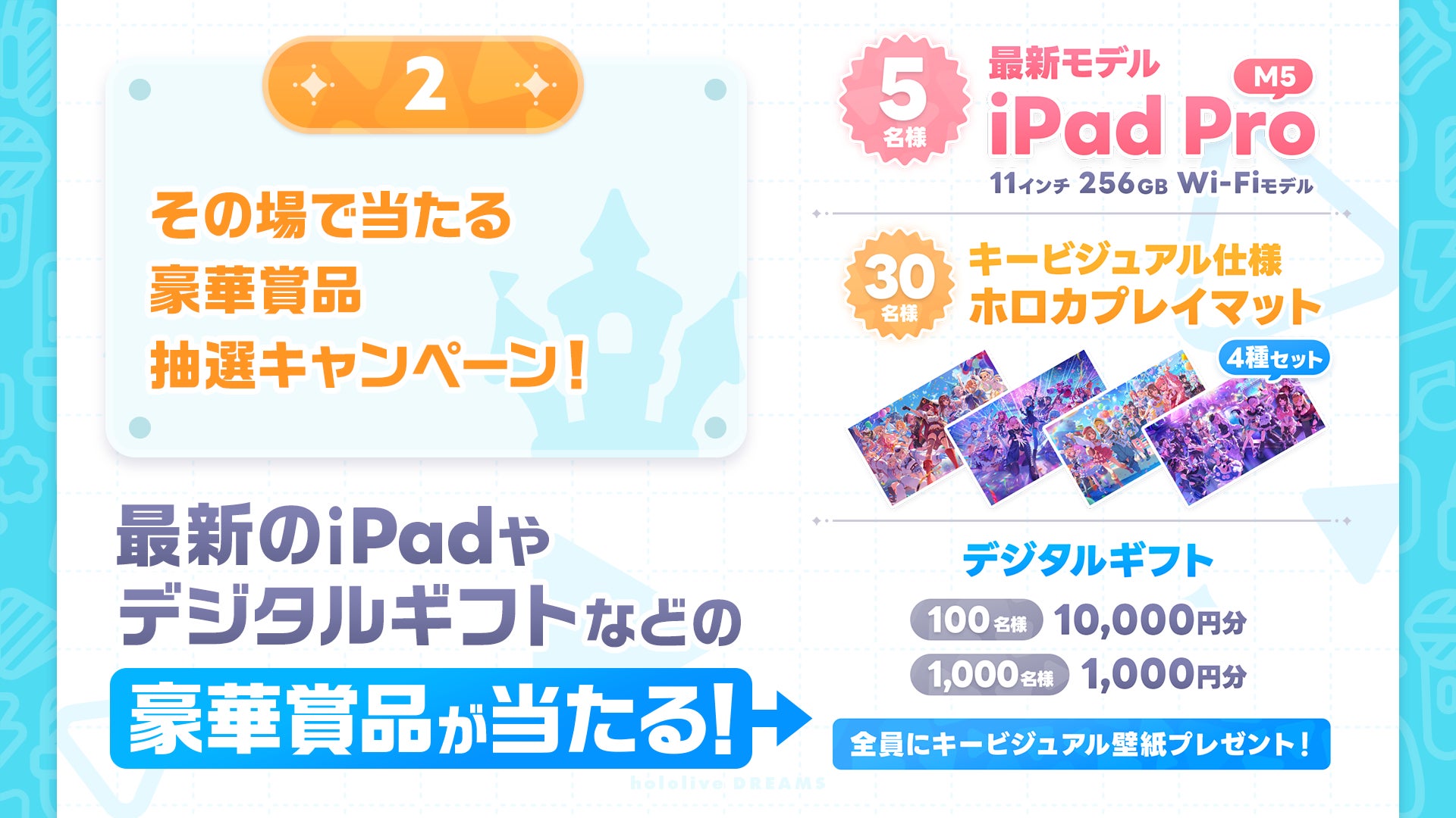 抽選で最新のiPadやデジタルギフトなどの豪華賞品がその場で当たるキャンペーンを実施いたします。