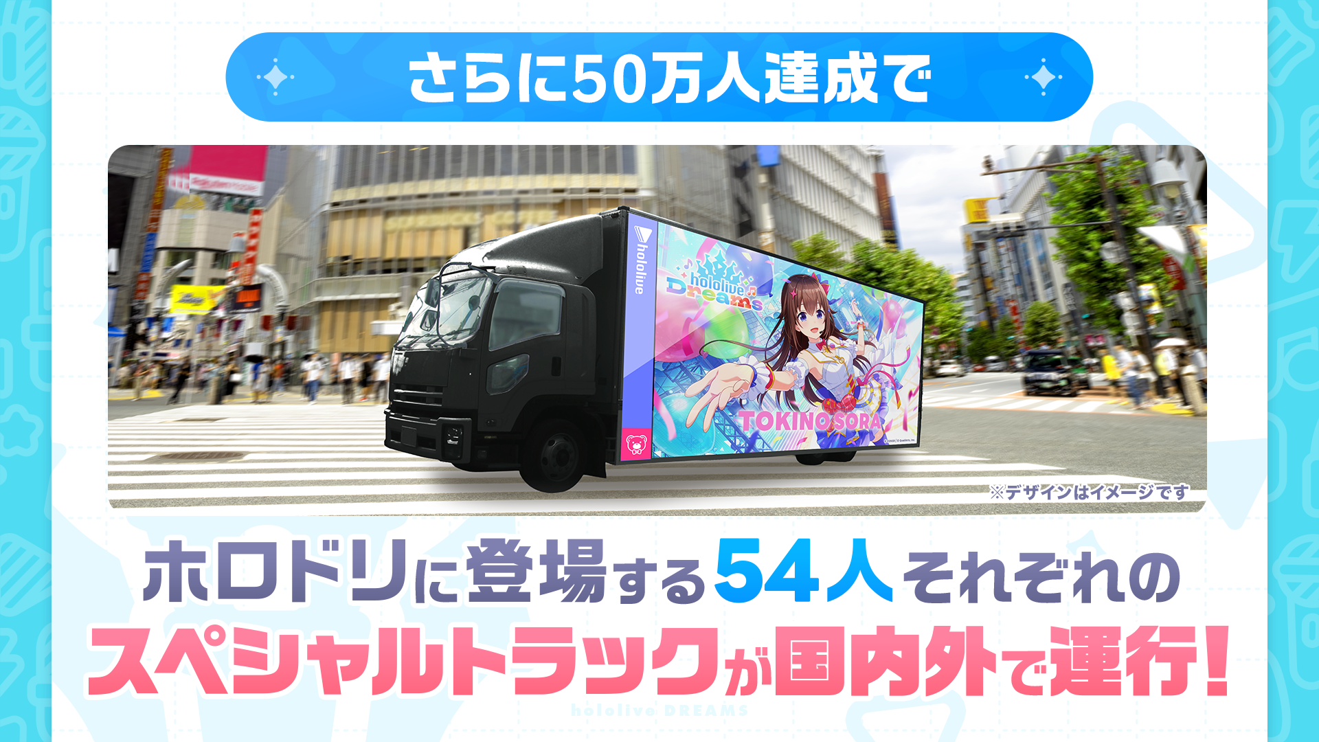 累計の事前登録数が50万人を突破すると、ホロドリに登場する54人のタレントそれぞれ