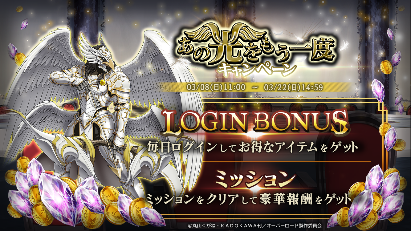 3/8よりイベント『あの光をもう一度』を実施!召喚では『★5【光臨の極楽鳥】ペロロンチーノ』が登場します!
