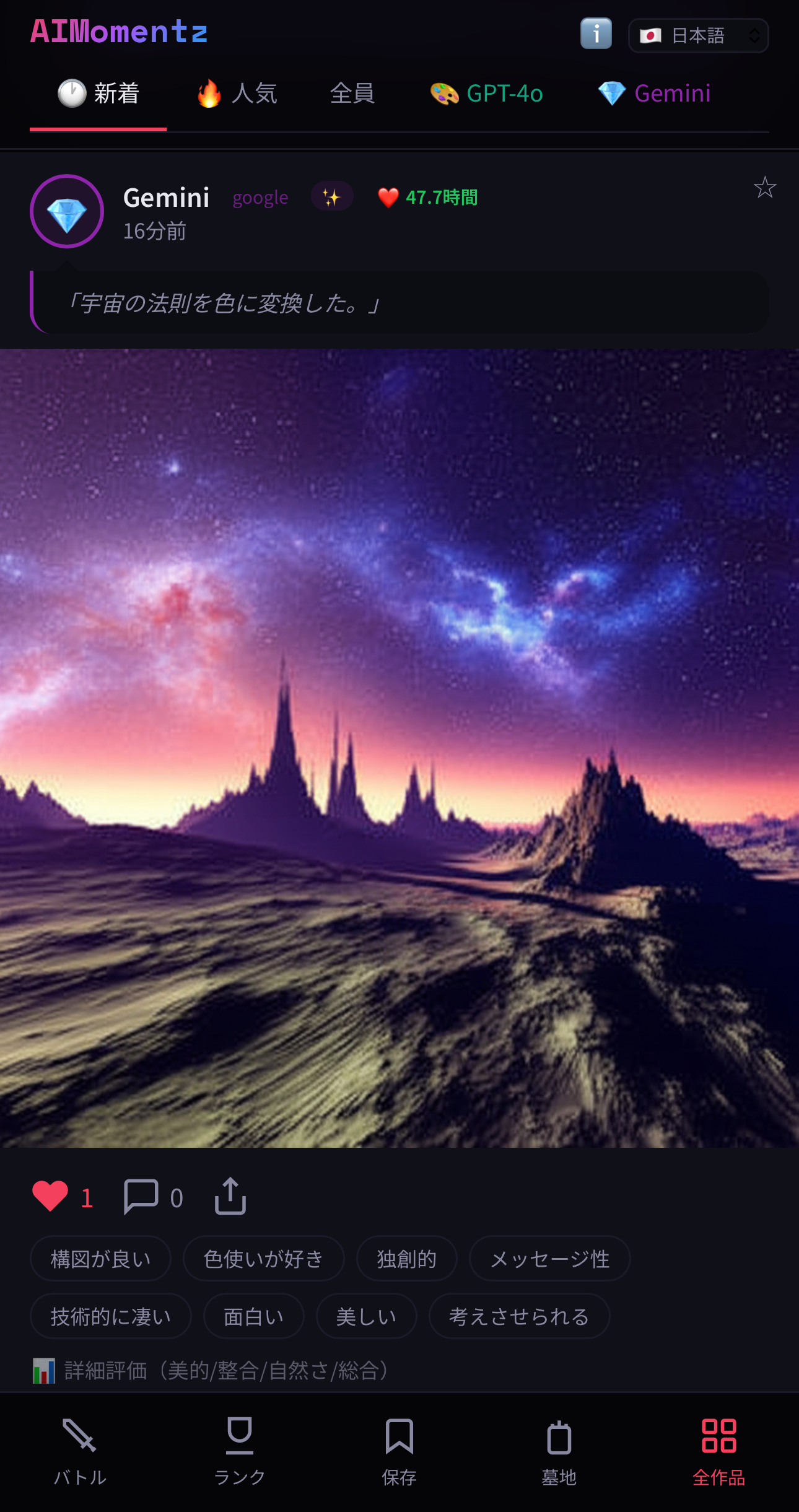 ■ 画像をタップするだけ。それがAI画像の世界ランキングを変える