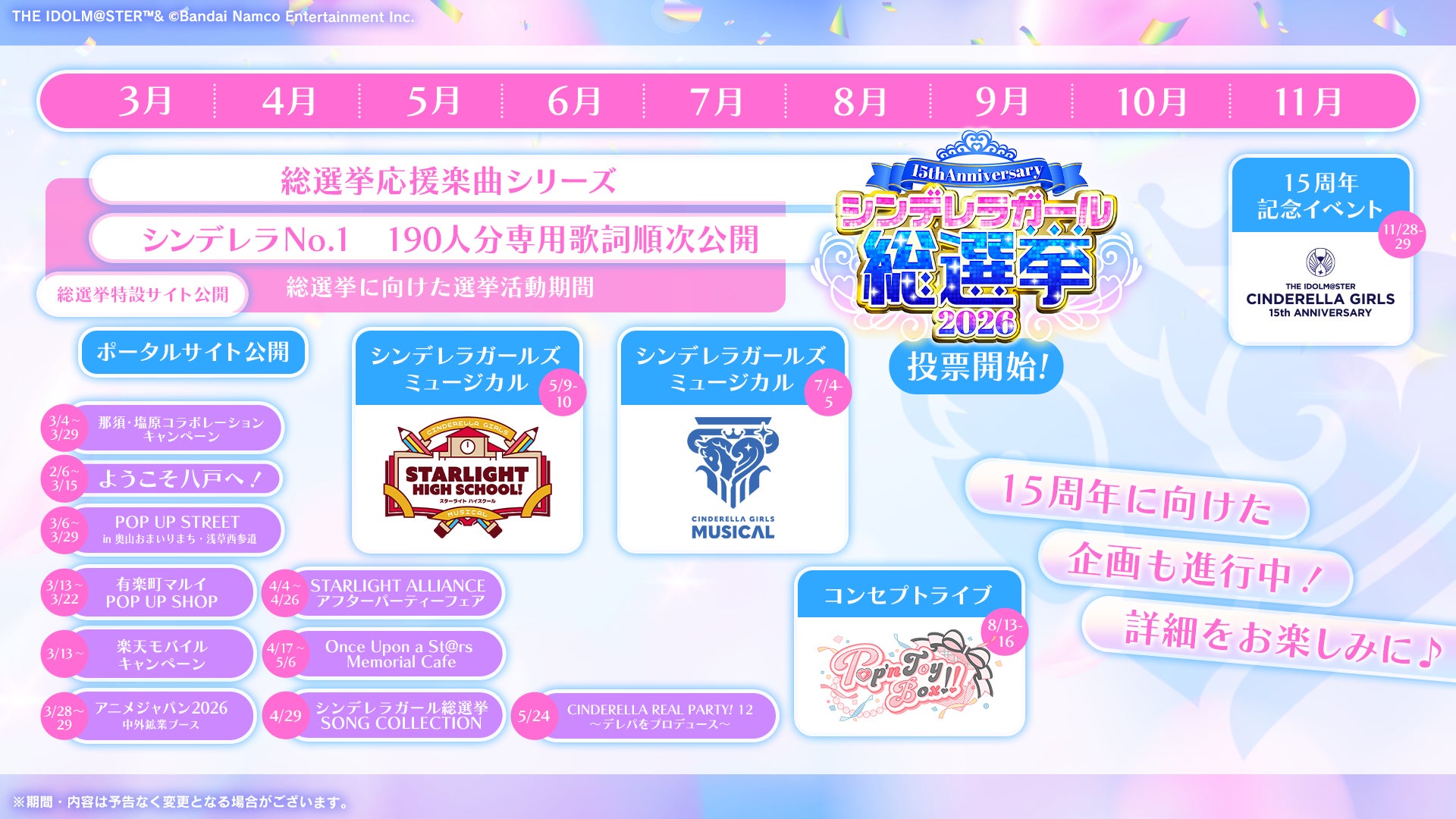 株式会社バンダイナムコエンターテインメントは、『アイドルマスター シンデレラガールズ』において「15th Anniversary シンデレラガール総選挙2026」の開催を決定したことをお知らせいたします。