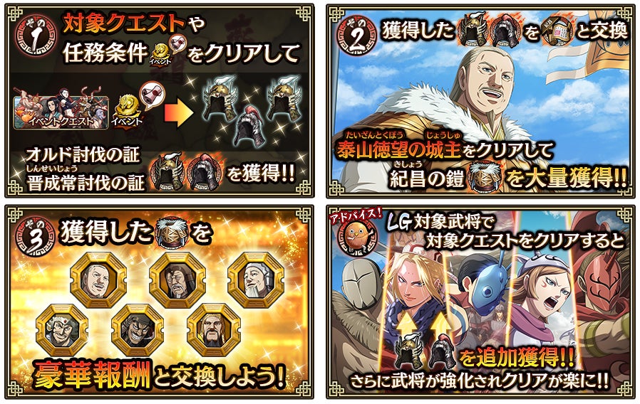 開催中のイベント『積年の勇将』のイベントクエストに、指定された武将を編成すると、交換用アイテムが追加でドロップ!報酬アイテムへの交換が容易になります!