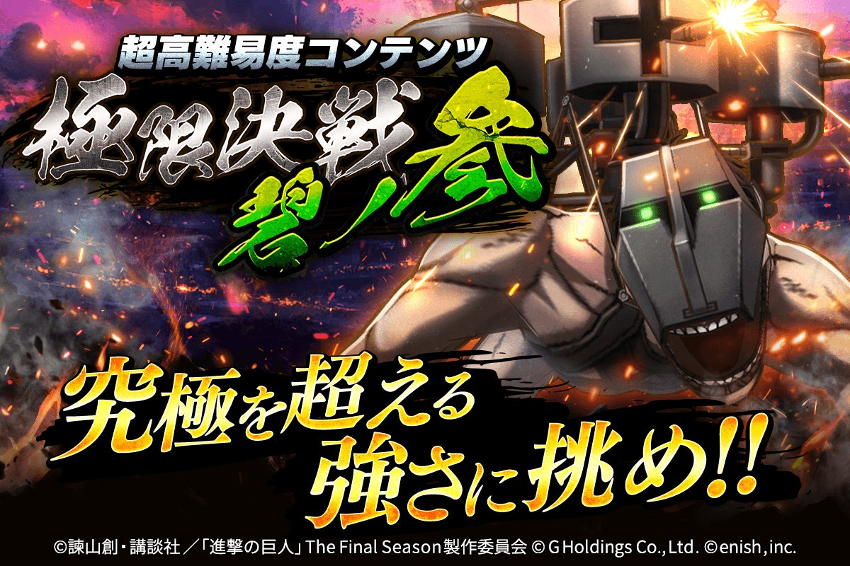 本ゲームは、単行本世界累計発行部数1.2億部を突破した人気作品『進撃の巨人』のスマートフォンゲーム最新作です。『進撃の巨人』は、NHK総合にて2023年11月4日(土)に「進撃の巨人」The Final Season完結編(後編)が放送されました。