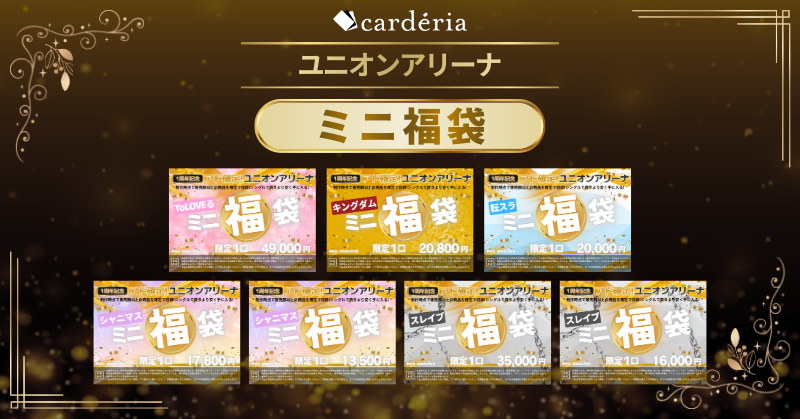 cardéria™池袋店では、これまでポケモンカードゲームやONE PIECEカードゲーム、ドラゴンボールスーパーカードゲーム フュージョンワールドのミニ福袋を販売し、多くのお客様から好評をいただいています。こうした反響を受け、今回新たに「ユニオンアリーナ」でもミニ福袋を展開します。