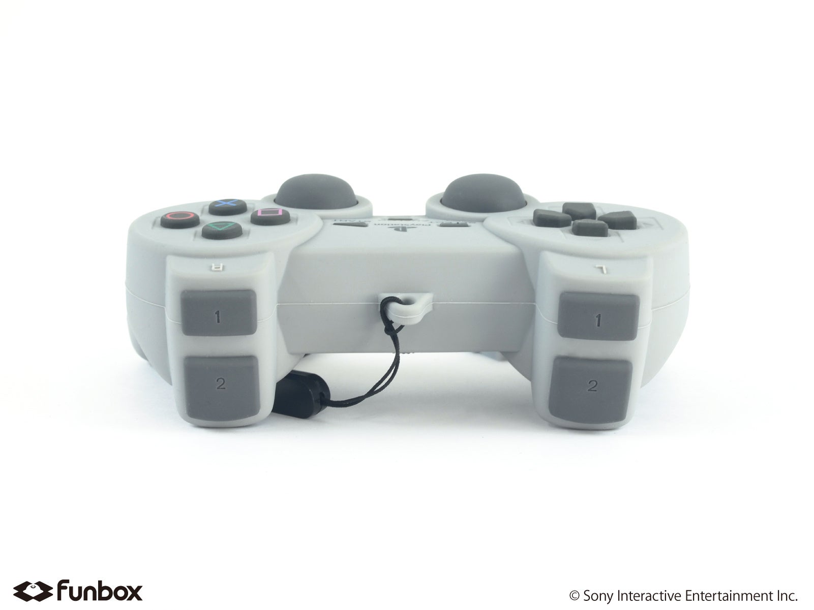 サイズや形状はもちろん、象徴的な△○×□ボタン(PlayStationシェイプス)など随所のデザインまでリアルに再現。また付属のプラグ型チャームとストラップは、なつかしの有線を表現しています。