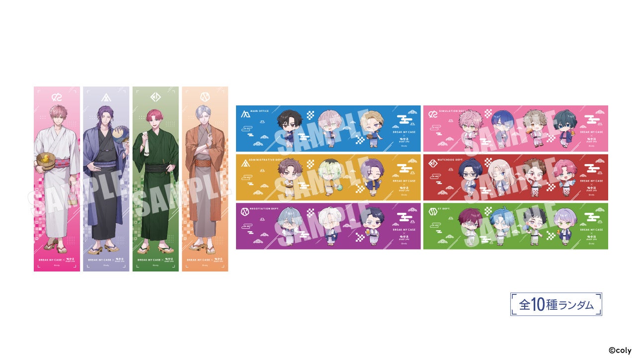 店舗ご入館時に、入館料金+ブレマイプラスセットの料金をお支払いいただいた方に、描き起こしイラストを使用したコラボ限定マフラータオルをランダムでお渡しします。