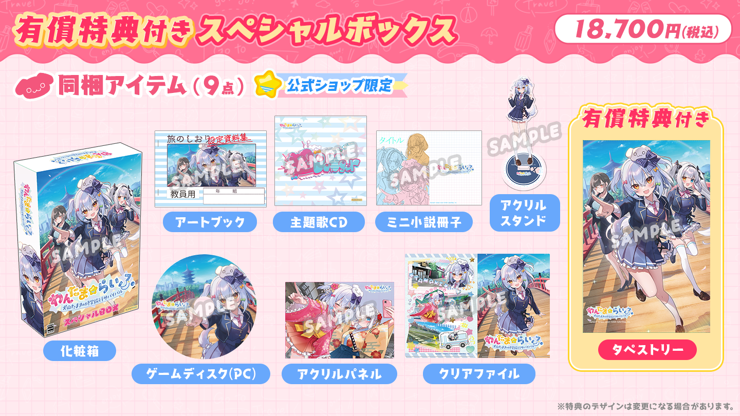 さらに、公式ECショップ限定でなんとB2サイズの大型タペストリーがついてくる「有償特典付きスペシャルボックス(税込18,700円)」も用意しています。