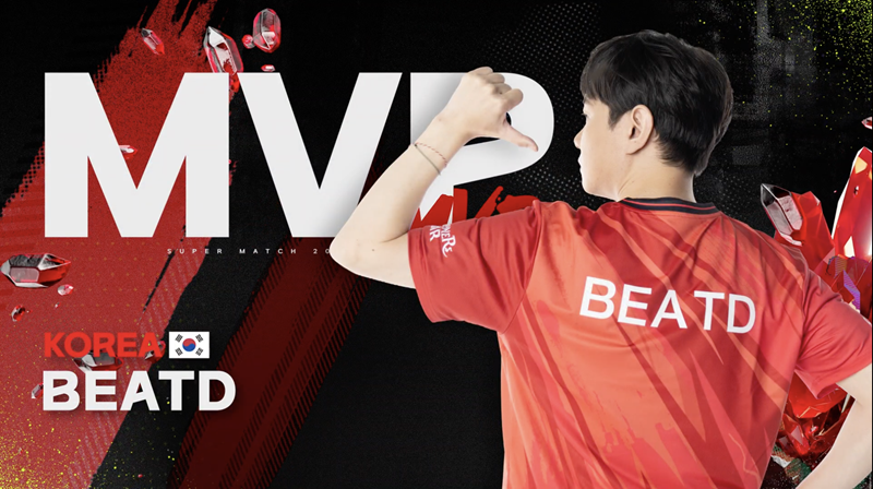 相手チームからの投票で選ばれるMVPは、韓国チームのBEATD選手が。日本チームはBEAT.P選手が選ばれました。