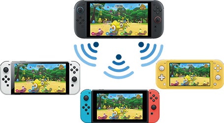 Nintendo Switch 2のゲームチャットに参加すると、離れた相手にもインターネットを活用してソフトをおすそわけできます。こちらは、Nintendo Switch 2のみでお楽しみいただけます。
