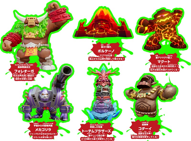 つぎつぎに襲い掛かってくるザコキャラ「グーミンズ」を撃破しながら進んだステージの奥では、凶悪なボスたちが待ち受けています!