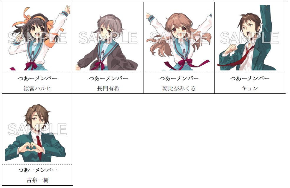 涼宮ハルヒ(CV.平野綾)、長門有希(CV.茅原実里)、朝比奈みくる(CV.後藤邑子)、キョン(CV.杉田智和)、古泉一樹(CV.小野大輔)