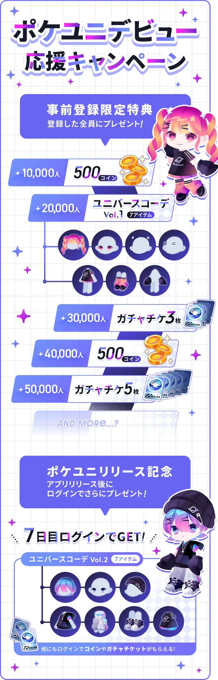 7日間ログインで「ユニバースコーデ Vol.2」(7アイテム)をプレゼントします。