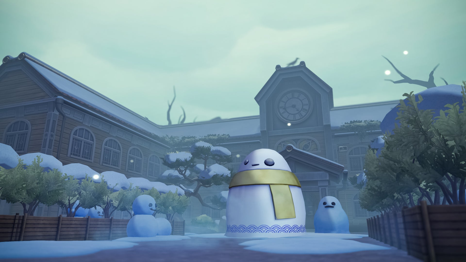 大雪に見舞われたオバケノ運動場。たくさん並んだ雪だるまの中にはニンゲンに似ているものが…?