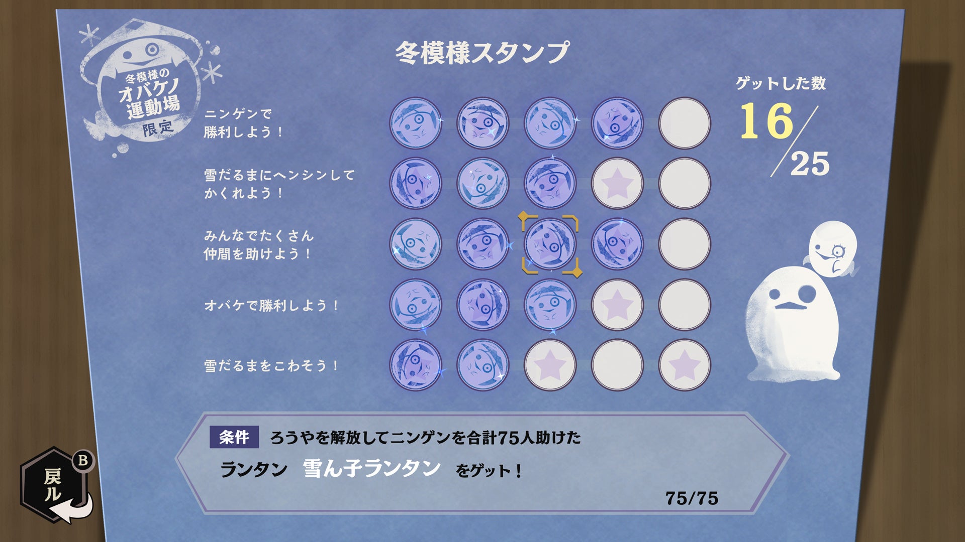 冬模様マップを遊んで限定スタンプを集めると、新オバケや新ランタンが手に入る!