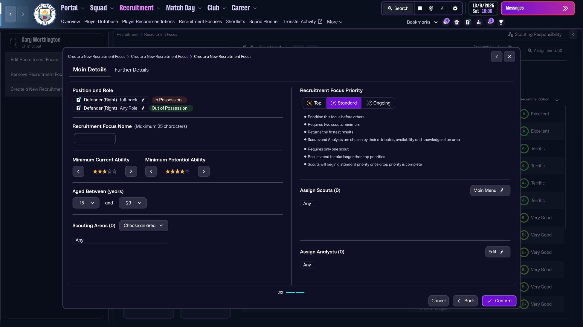 また本作では、スカウト活動を効率的に行える「採用フォーカス」機能を引き続き搭載。ポジション、リーグ、年齢層などの条件を設定することで、クラブの方針に合った選手候補をスカウト部門がリストアップし、補強の選択肢を広げることができます。