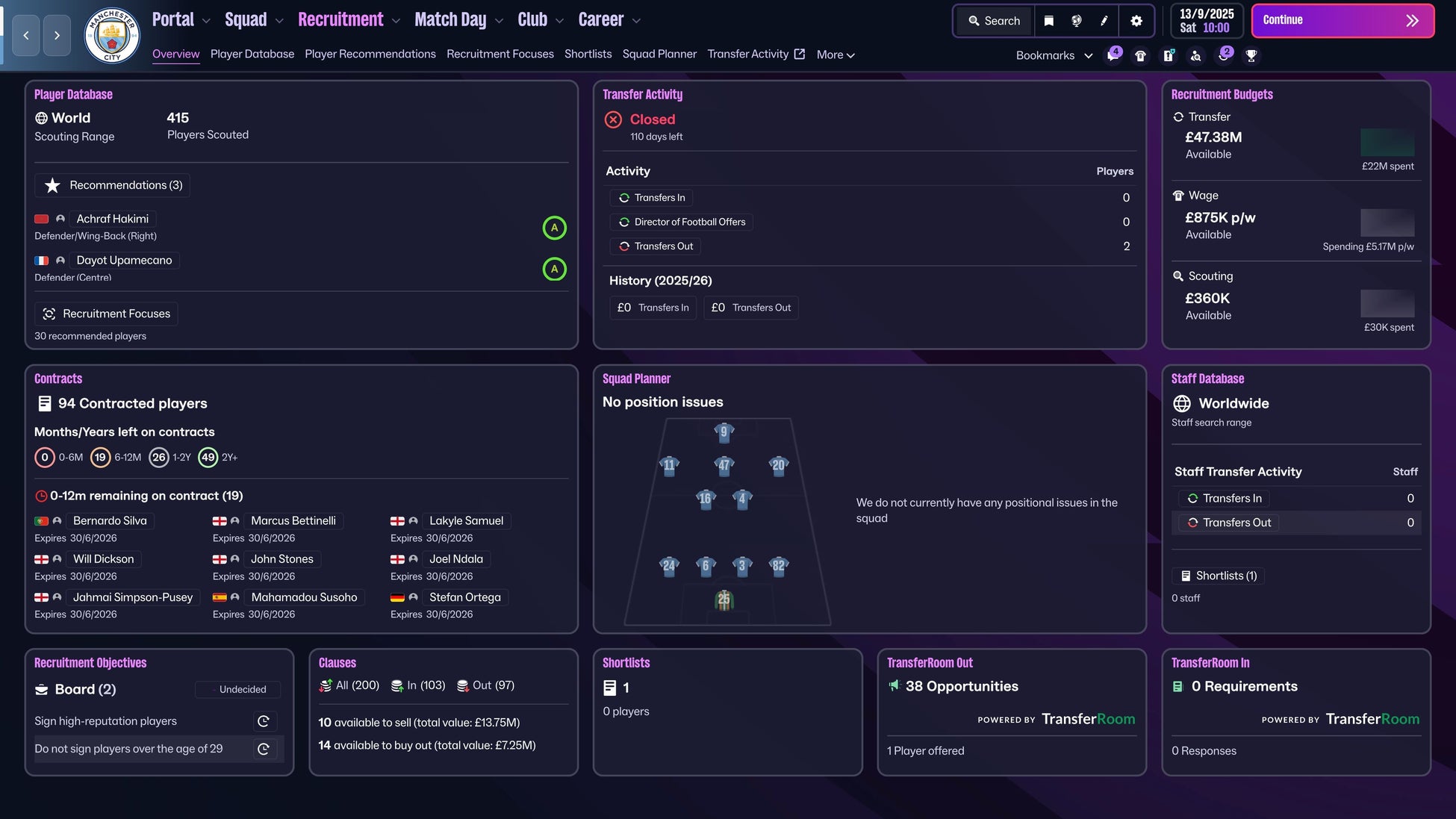 『FM26』では、クラブの戦力強化を担う移籍市場と採用(リクルート)システムがさらに強化され、より戦略的なチーム作りが可能になりました。プレイヤーは、スカウティング、補強、選手放出などのクラブ運営をリアルに体験しながら、理想のスカッド構築を目指すことができます。