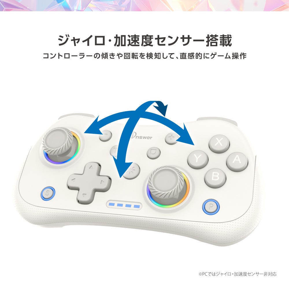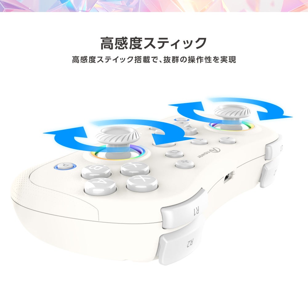 ジャイロ・加速度センサーや連射・連射ホールドなどの機能搭載!小さくてもしっかり使えてSwitch2をはじめとしたSwitchシリーズに対応!PCでは有線コントローラーとしても使用可能!