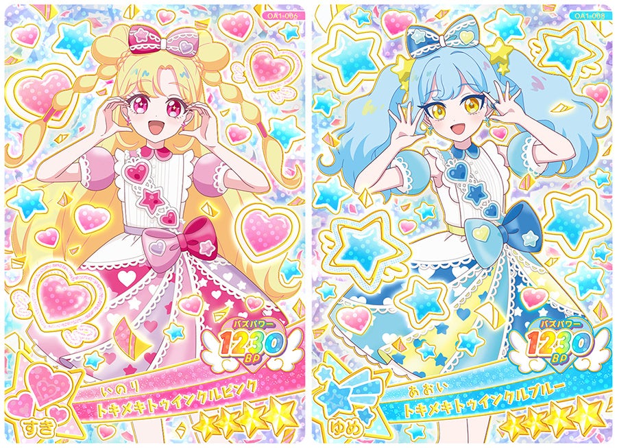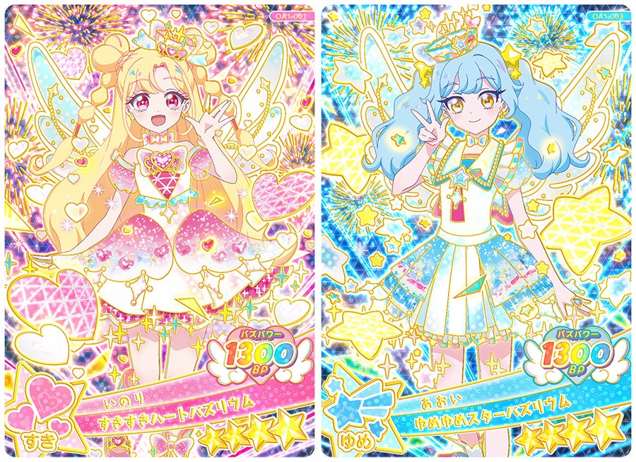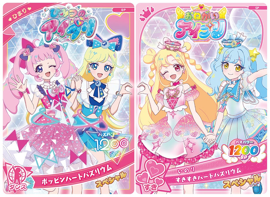 「ひまり(ポッピンハートバズリウム)」は3月28日(土)から、「いのり(すきすきハートバズリウム)」は4月4日(土)から『ひみつのアイプリ』や『おねがいアイプリ』のアミューズメントゲーム機が設置されているお店で来店したお客様に年齢無制限でプレゼントされます。