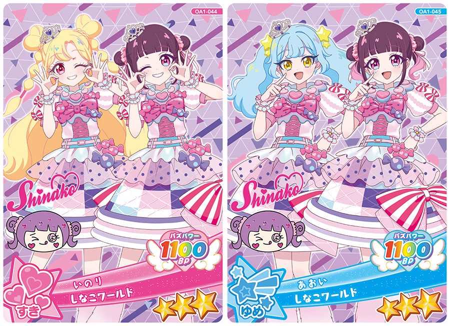 「1だん」に登場するコラボアイプリカードは、小・中学生を中心に人気を集める原宿系インフルエンサーの「しなこ」とのコラボレーションに決定しました。ドットやチェック、ストライプ柄など“可愛い”ポイントを押さえたキュートなコーデ「しなこワールド」を着た「いのり」と「あおい」を楽しむことができます。