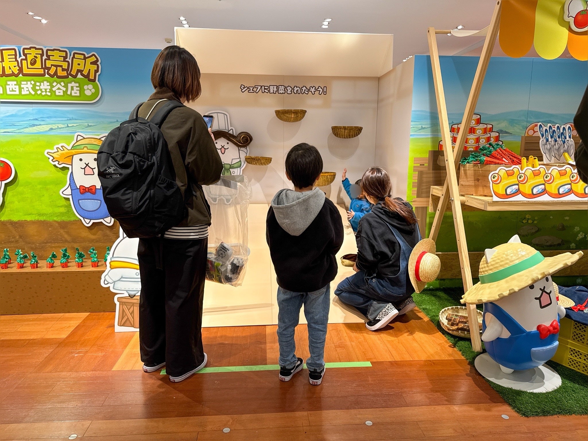会場では、『パズルで豊作!にゃんこ村』のゲーム内ミニゲームを再現した体験コーナー「シェフのお手伝い体験(野菜投げ)」を実施しています。