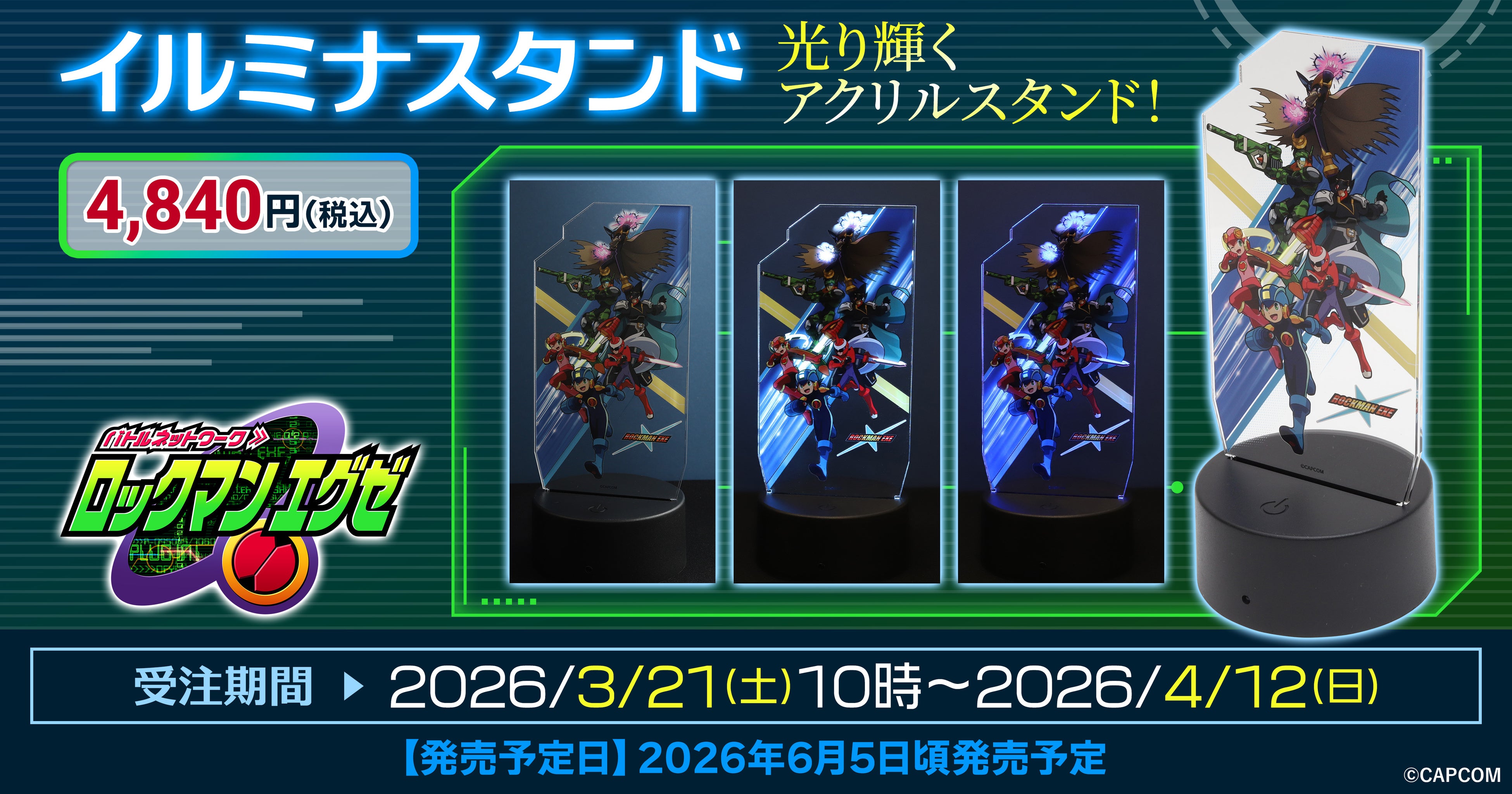 駆け抜けるロックマンたちが印象的な新規描き起こしを使用したイルミナスタンドが登場!