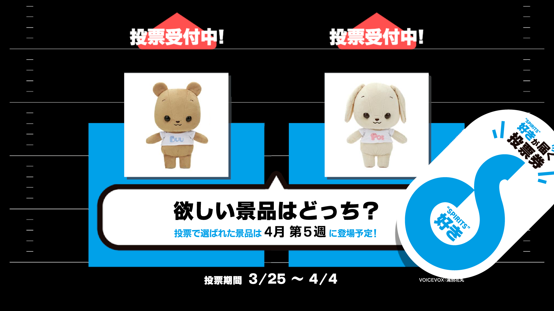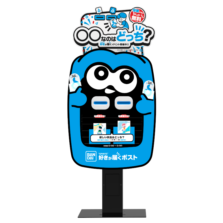 『好き(“SPIRITS”)が届くポスト』では、期間ごとにさまざまなアンケートを実施し、“好き”を投稿することができます。アンケートに回答すると、対象のクレーンゲーム機器で使用できる『1プレイ無料チケット』を発行します。アンケート結果を基に、『1プレイ無料チケット』対象機器に投入する次回の景品を決定します。