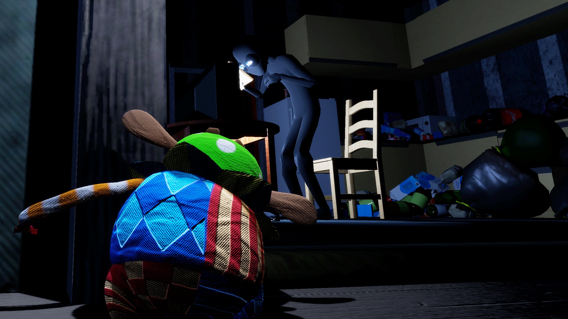 本作は、玩具ぬいぐるみが主人公のホラーパズルアクションゲームです。舞台は、精神的に壊れてしまった持ち主が住む、ひどく散らかった部屋。プレイヤーは「玩具の3つの掟」という絶対のルールに縛られながら、部屋を探索し、持ち主のもとに「思い出の品」を届けていきます。